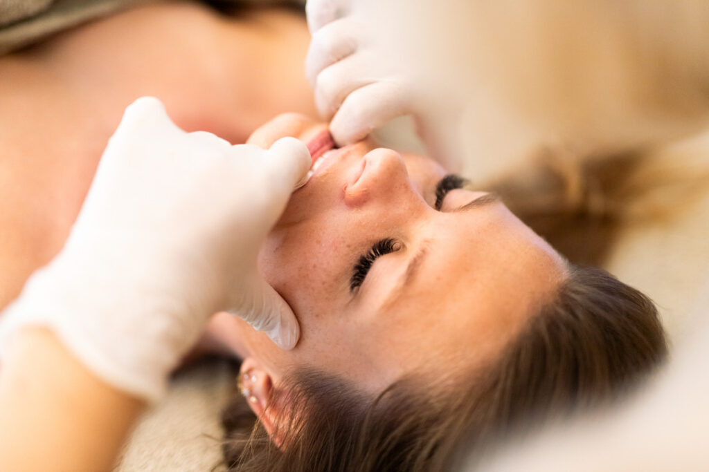 Celle-ci consiste à sculpter le visage de l’intérieur en travaillant les muscles internes et externes de la bouche ce qui permet de repulper en profondeur et d’exercer un double massage .